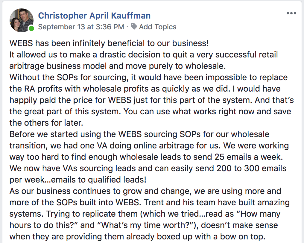 These are the exact problems that I’ll help you address with Product Sourcing for Professionals; a proven set of Standard Operating Procedures (SOPs) that anyone can use to immediately delegate all the boring (yet absolutely critical) grunt work to your virtual assistant(s).